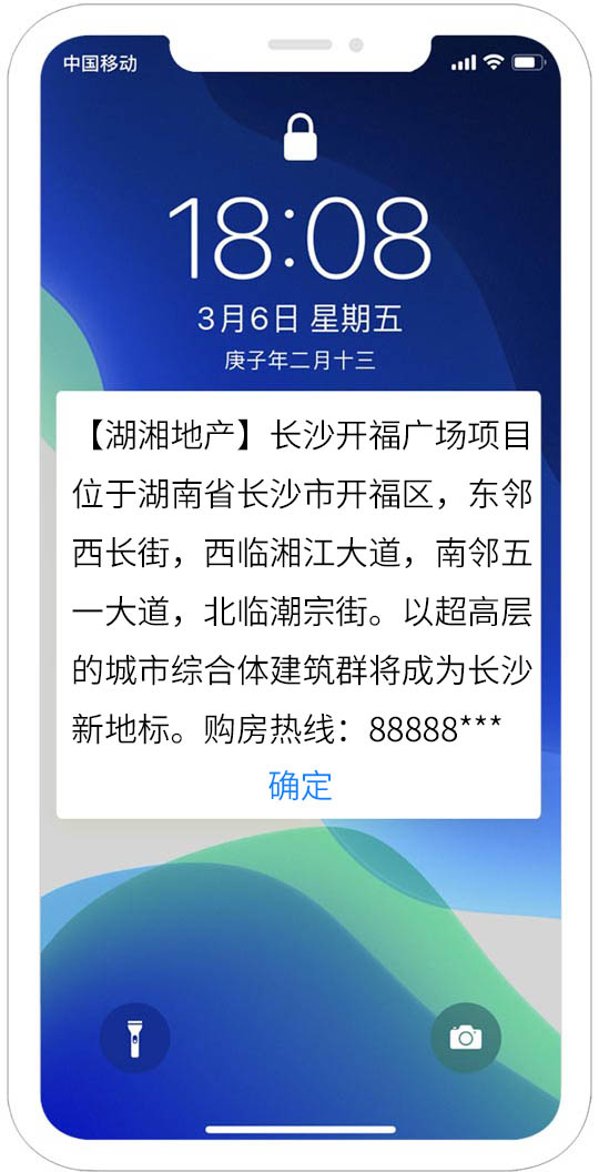 閃信群發直達用戶手機屏幕、實時彈屏顯示、無須層層點擊,讓每一條閃信群發都能被看見!閃信群發適用于緊急通知、緊急提醒、限時活動、限時促銷、等符合法律規定的閃信群發內容。